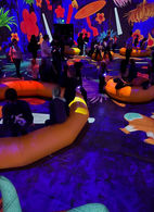 This 70-minute musical journey is brought to life by funny and astonishing characters. They merge with interactive projections, luminous wristbands that transform gestures and movements in harmony with light, sound, and space, as well as inflatable scenographic elements.
